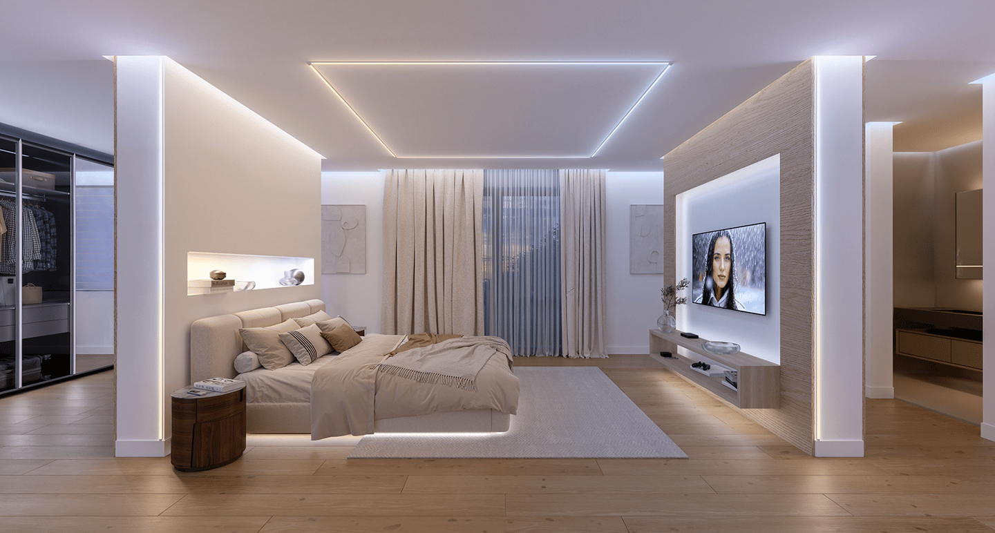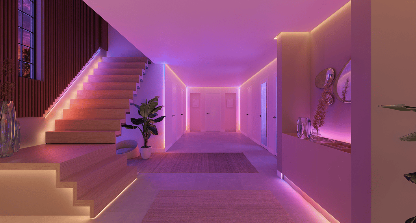 Using CGI production, we built a complete house, inside and out, to demonstrate all possible use cases. From interiors to outdoor spaces, each scene captures how Striplights transform environments with vibrant and seamless illumination.